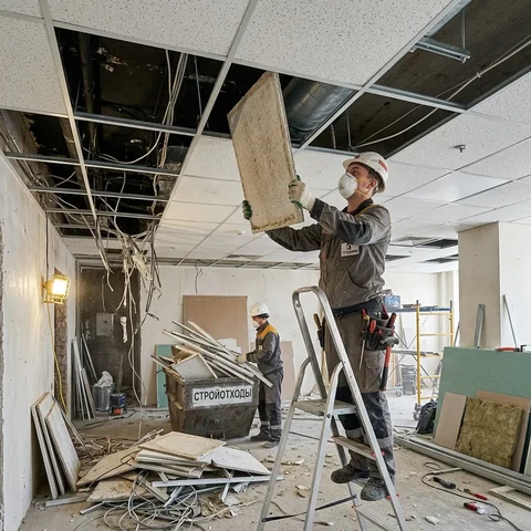 ⬜ Демонтаж подвесных потолков в Новороссийске – освободим высоту помещения!