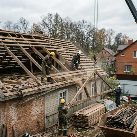 🪚 Демонтаж обрешётки и стропил в Новороссийске – полная разборка деревянной крыши!