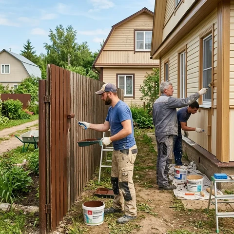 Старый забор или облупившийся фасад портят впечатление от участка. Наши разнорабочие проведут полную покраску под ключ.