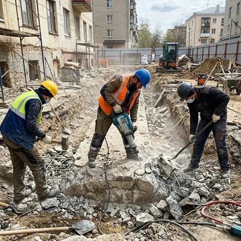 🧱 Демонтаж фундаментов в Новороссийске – полностью уберём старое основание!